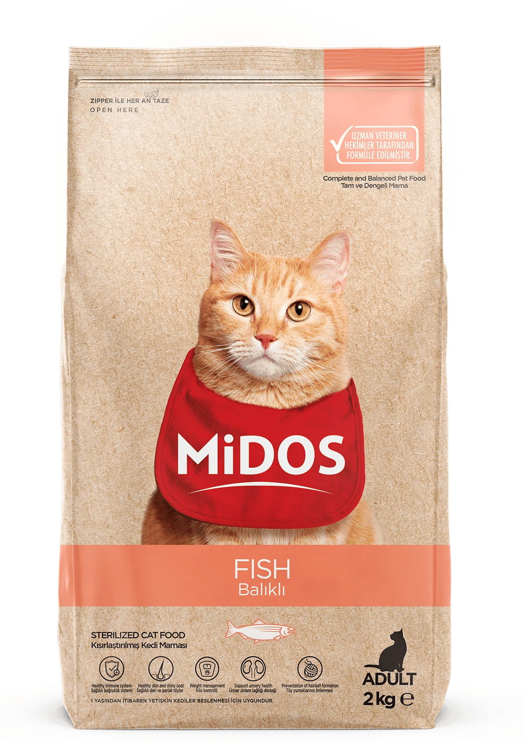 MİDOS Balıklı ve Pirinçli Kısırlaştırılmış Kedi Maması 2 Kg