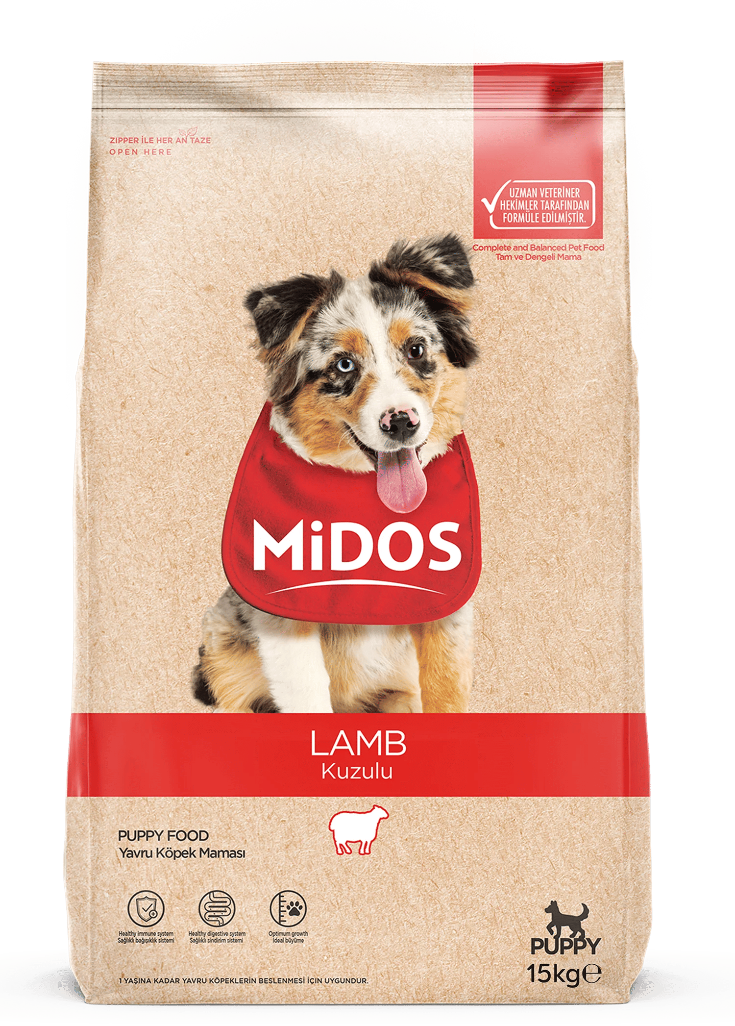 MİDOS Kuzu Etli ve Pirinçli Yavru Köpek Sağlıklı Gelişim 15 Kg