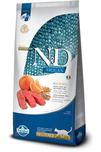 N&D Ocean Somonlu Kavuzlu Buğdaylı Yulaflı Portakallı Kısırlaştırılmış Yetişkin Kedi Maması 10 Kg