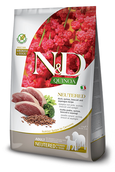 N&D Quinoa Neutered Ördek, Brokoli & Kuşkonmaz Kısırlaştırılmış Yetişkin Mini Irk Köpek Maması 2,5 Kg