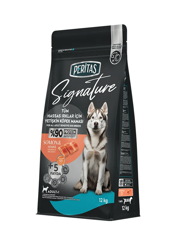 Signature Somonlu Yetişkin Köpek Hassas Irk 12 Kg, lezzetli içeriği ve dengeli formülü ile evcil hayvanınızın sağlıklı, mutlu ve enerjik bir yaşam sürmesine yardımcı olur.
